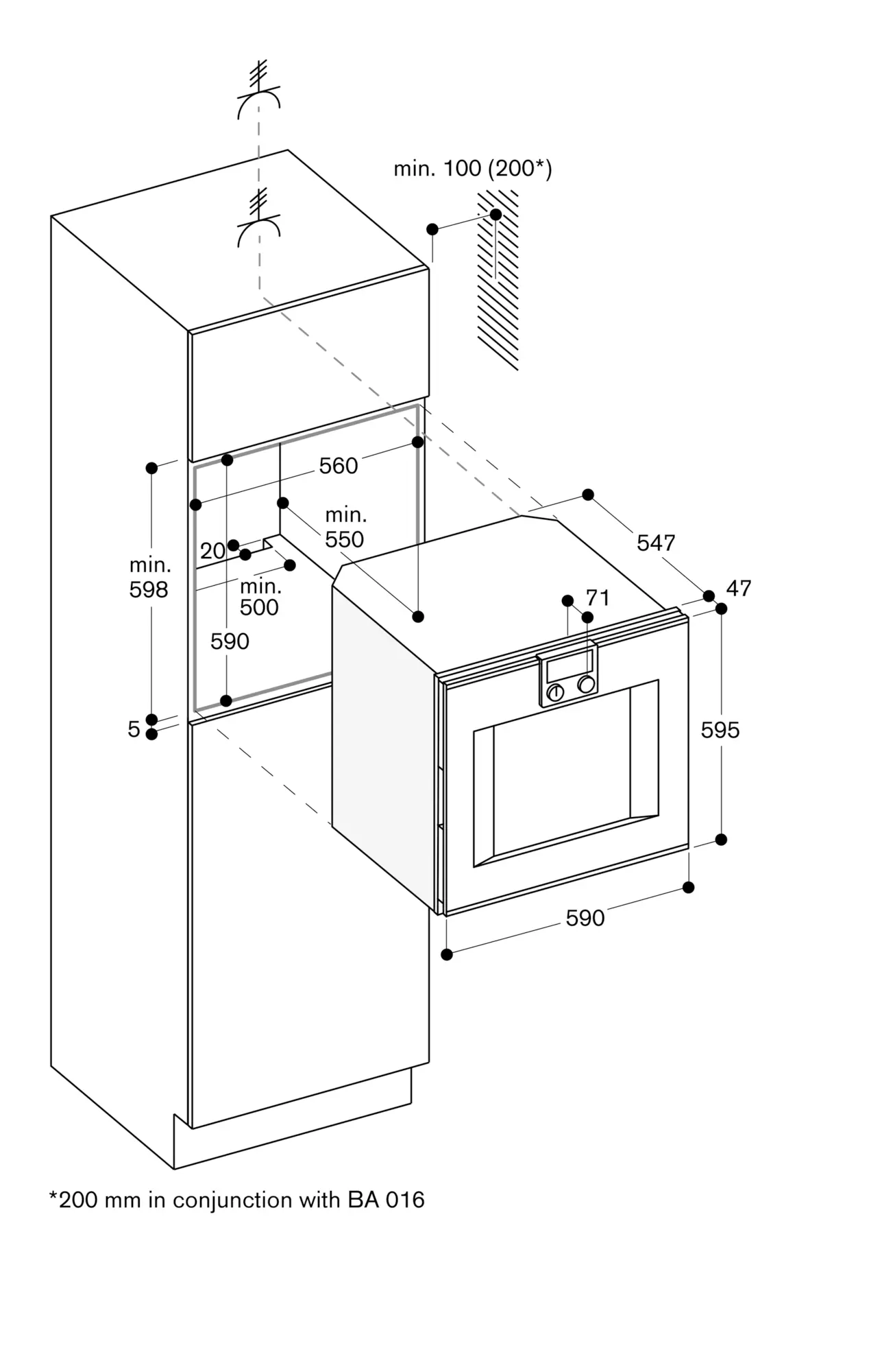 Consider the overhang, incl. the door handle where applicable, when planning to open drawers next to the appliance.