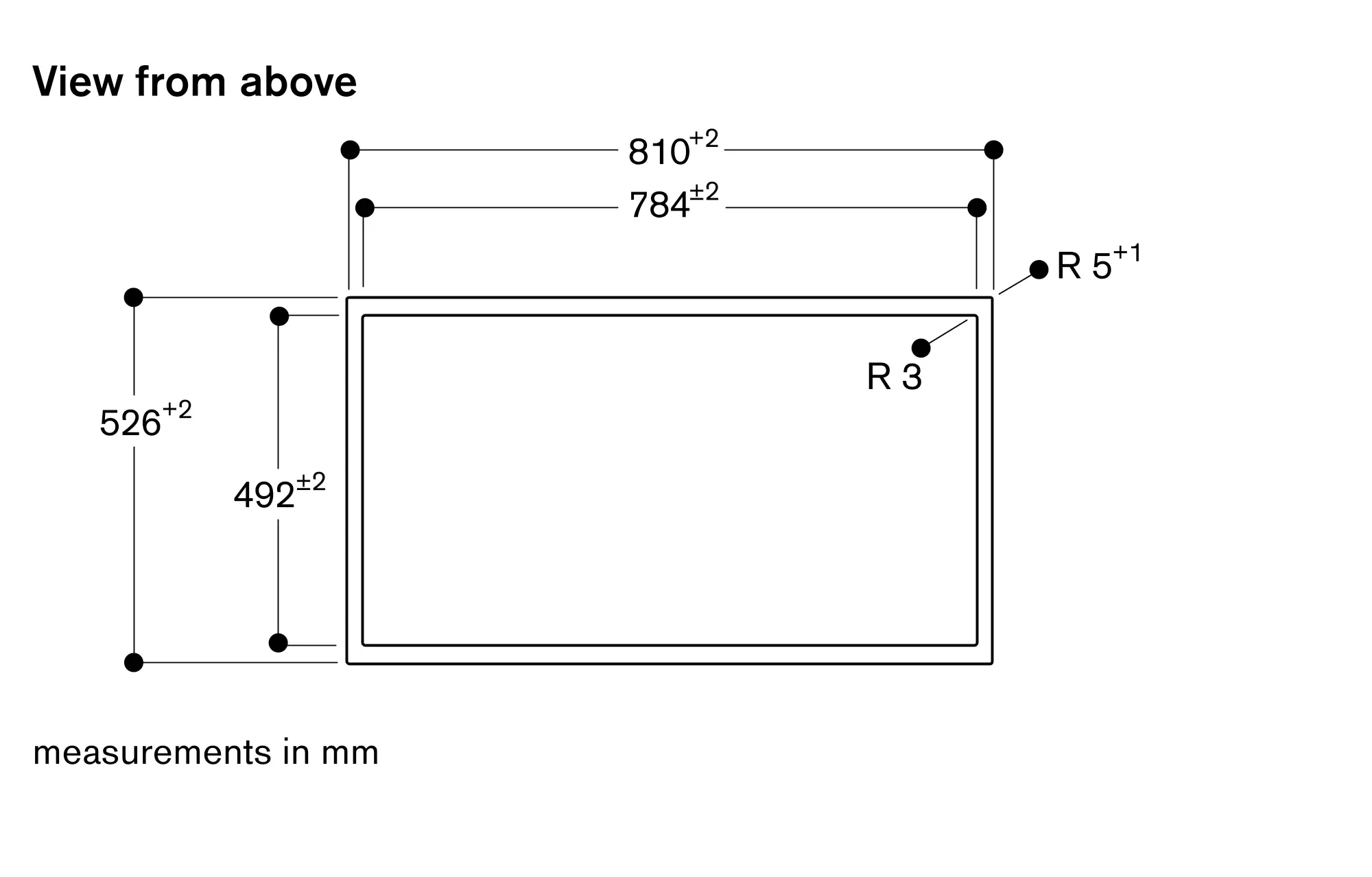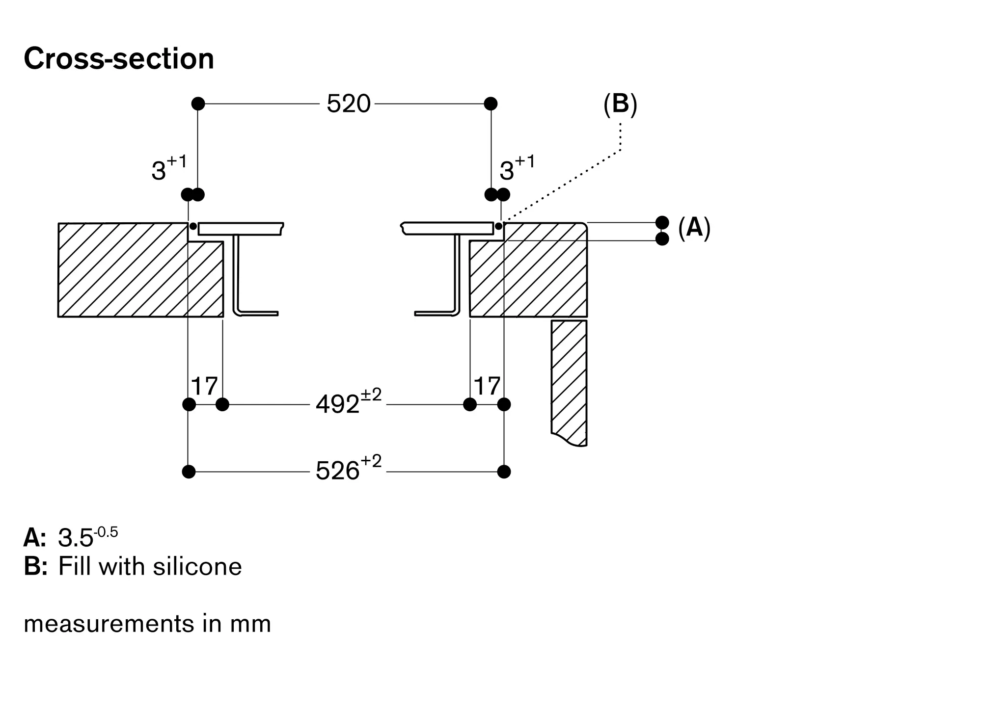 The bearing capacity and stability, in the case of thin worktops in particular, must be supported using suitable substructures. Take into account the appliance weight and additional loads.