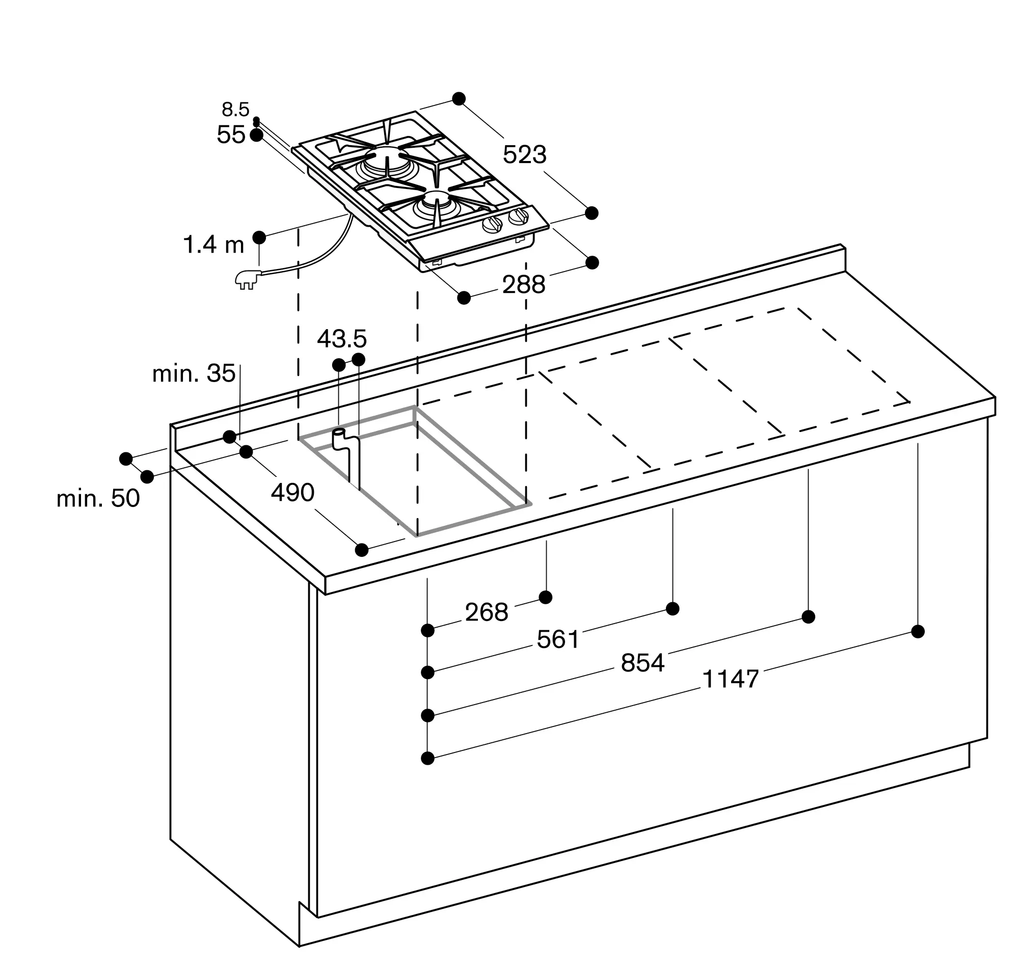 Appliance can be snapped into the worktop from above.