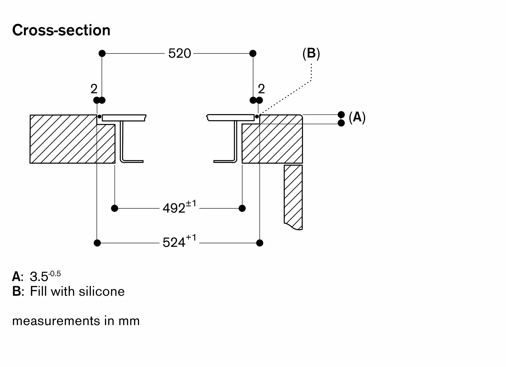 The groove must be continuous and even, so that uniform placing of the appliance on the gasket is ensured. Do not use discontinuous lining.